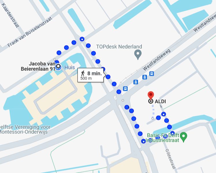 If i want to get beer, how do i do this? Step 1: Get old crates Step 2: Get the bakfiets Step 3: Go to Aldi, see the route down here